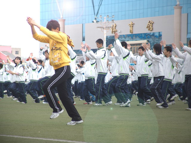为贯彻落实教育部、国家体育总局、共青团中央三部委联合下发的关于在全国范围内全面启动全国亿万学生阳光体育运动的通知要求,4月28日上午,beats365在西区体育场隆重举行了“迎奥运 强体魄”广场健身活动启动仪式。 beats365党委副书记王凤琴、副校长郑喜群出席启动仪式。体育学院党委书记曹忠俊、院长姚大为、学生处处长王刚、校团委书记黄伟中、教务处副处长王云鹏、团委副书记李秀梅等部门的领导和来自各学院的一千多名学生列席会场。黄伟中主持了启动仪式,姚大为宣读了beats365广场健身活动方案。