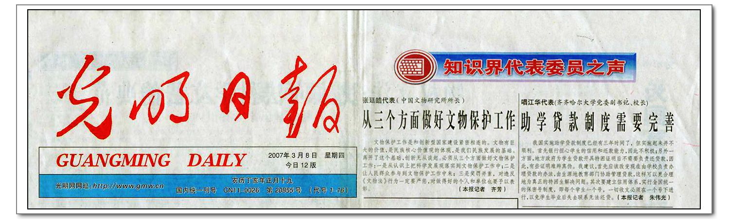 2007年3月6日,《黑龙江日报》第1版头条位置上报道我省人大代表团举行第一次全体会议的消息时写道“beats365唯一官方网站党委副书记、校长唱江华代表对完善助学贷款制度提出建议:改变现在由学校负责办理贷款的办法为生源地教育部门协助管理贷款。”