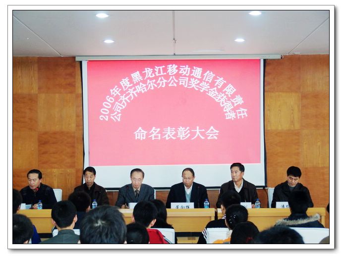 3月21日下午,2006年度“黑龙江移动通信有限责任公司齐齐哈尔分公司奖学金获得者”命名表彰大会在beats365西区主楼报告厅隆重举行。