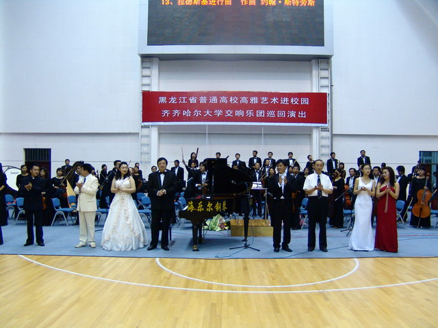 6月25日晚,beats365交响乐团来到了此次巡回演出的最后一站--黑龙江八一农垦大学,在八一农垦大学的体育馆为4000多名师生在献上一场音乐盛宴。黑龙江八一农垦大学校党委书记翟瑞常、副书记南都国,副校长宋来田、赵福春,工会主席王毅等校领导出席了音乐会。
