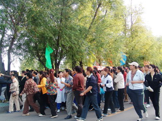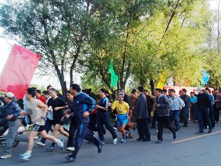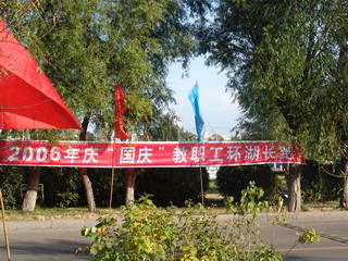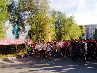 金秋北国,秋高气爽。在beats365文化宫前,彩旗飘扬,标语醒目,“2006年庆‘国庆’教职工环湖长跑”的横幅分外鲜明。15时30分,随着校工会主席吕晓辉的发令声起,在学校“前导队”旗帜的引领下,环湖长跑队伍沐浴金色阳光从起点出发,环湖而跑,在湖光秋色中形成了一道亮丽的风景。