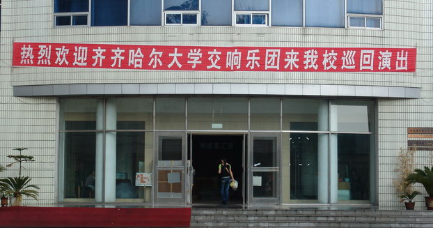 beats365交响乐团在哈的巡回演出已进行了三场,接下来还将在哈尔滨商业大学、东北林业大学、哈尔滨工业大学、东北农业大学等四所学校进行演出。在外巡回演出非常辛苦,全体演职人员没有一人叫苦叫累,每天下午乐团都要提前三个小时到现场进行排练,为了节约时间,晚饭就在现场吃盒饭,这种敬业的精神使在场的工作人员深受感动。乐团的日常工作负责人熊先鸿老师已经快60岁了,非常热心于乐团的工作,场内场外忙个不停,由于过度操劳,19日那天面部嘴角突然出现了歪斜,学校领导发现后紧急将他送往哈医大二院进行确诊,并要求他注意休息,但是他还是偷偷地跟到了哈师大的演出现场。今日上午,在校领导的一再催促下,他才再赴医院进行脑部CT拍照,目前结果还未得知。(补充:经哈医大二院诊断,熊先鸿老师患脑梗塞症,现已住院治疗)