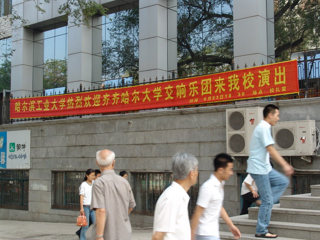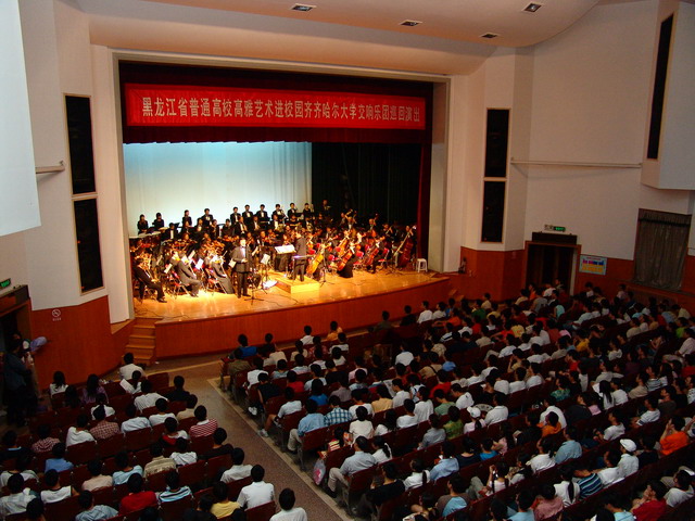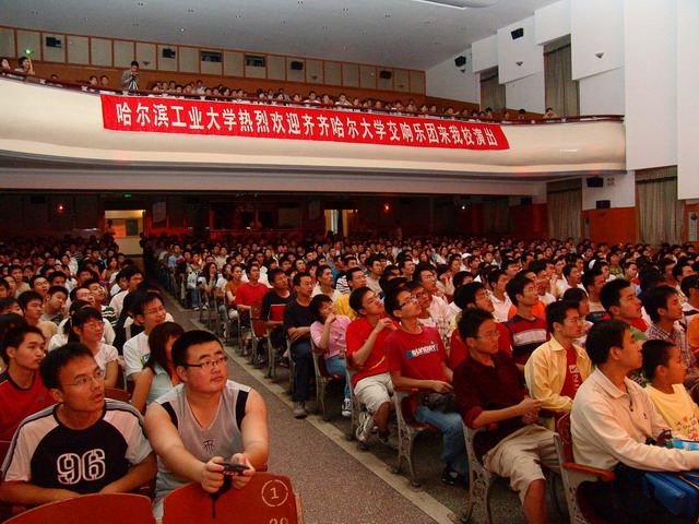 哈工大非常重视这次“高雅艺术进校园”交响乐演出活动,团委提前几天做了大量的宣传工作,欢迎条幅和海报挂满了校园的重要场所。演出当天,哈工大的紫丁香BBS上关于演出的消息成为当日十大热帖之一,工大学生在BBS上留言说“工大缺的就是这个,一定要去看”,还有一位同学说:“我前几天在师大已经看了一场,感觉非常好,今天一定要去再看一次”。哈工大对于演出的习惯做法是不组织观众,师生自愿参加,结果演出当日不少听到消息却没领到票的观众也来到了现场,以致演出开始前主办者不得不一再提示没有票的观众请尽量往后坐。