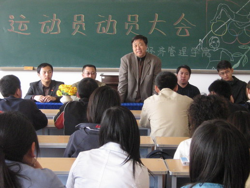 经济管理学院4月27日召开了全体运动员动员大会,学院党委书记李玉山、副书记副院长邹立堂、辅导员马晓华出席了动员会。李玉山回顾了经管学院在学校历次运动会上取得的优异成绩,勉励运动员发扬成绩,克服困难,团结协作,再创佳绩。邹立堂对全体运动员提出了希望和要求,叮嘱运动员处理好学习和训练的关系,做到学习训练两不误。运动员们信心倍增,决心在运动会中再展经管学院的风采,为学院争光。