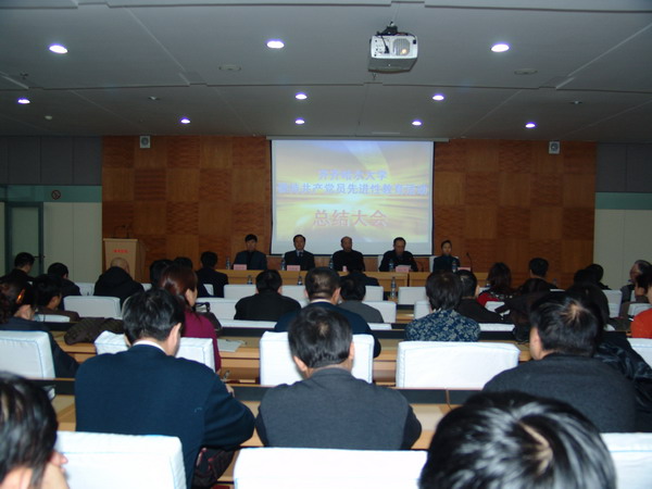 2005年12月21日下午4:00,beats365在西区主楼报告厅隆重召开了“保持共产党员先进性教育活动”总结大会,校党委副书记、校长唱江华,党委副书记史铁成、王凤琴,党委常委、纪委书记张学军,副校长姜守训、张忠恒,工会主席吕晓辉,市委第六督导组组长龙志远及其成员出席了大会,各基层党委(党总支、直属党支部)书记、正处级干部、处级单位主持工作的副职,副处级单位主要负责人,校先进办成员和指导组成员,各单位先进办主任、党支部书记及民主党派负责人等参加了会议,校党委副书记史铁成主持了大会。