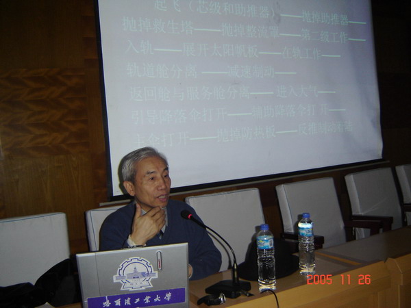 本次学术讲座的题目为《“神舟号”飞船和载人航天》。刘暾教授介绍了我国载人航天飞船及航天工程所面临的艰巨任务;载人航天的由来及我国载人航天发展的历程:载人航天工程的组成和“神舟号”飞船飞行过程;酒泉发射中心和航天指挥中心和航天工程的三步走计划,同时他还为同学们展示了神舟二号和三号飞船飞行过程的图片,使同学们在感性和理性上对航天飞船有了进一步的了解。在讲到“神舟号”飞行过程的时候,刘教授借助文字与动画相结合的手段,让同学们对载人航天飞船的飞行过程有了更全面、更直观的了解。最后,刘教授介绍了他们研究组所承担的有关“神舟号”的科研项目。讲座现场座无虚席,历时2个小时,在全场热烈的掌声中圆满结束。