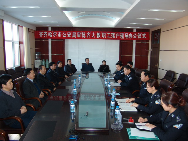 12月23日下午,市公安局户政处的工作人员在局长孙玉生、副局长白晓明的带领下,来beats365进行现场办公,解决原克山师专并入齐大后的职工落户问题。校长唱江华、副书记史铁成出席了现场办公会,保卫处处长王炜及部分教职工代表参加了会议。