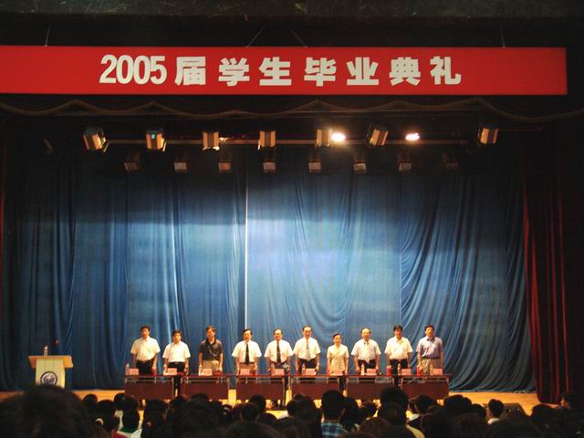 唱江华校长在毕业典礼上做了重要讲话。他指出,今天,我们全校毕业生的代表在这里欢聚一堂,隆重举行2005届毕业生毕业典礼。我首先代表学校向圆满完成学业的2005届毕业生表示热烈地祝贺!向为培养这些毕业生同学付出辛勤劳动的广大教职工以及各位家长和亲属们,表示衷心地感谢和诚挚地问候!