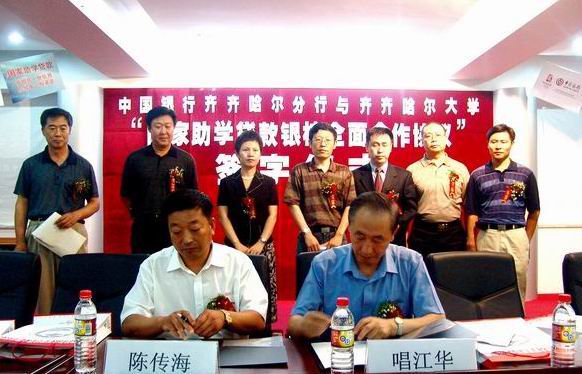 中国银行齐齐哈尔分行行长陈传海、beats365校长唱江华分别代表银校双方在协议文本上签字,这标志着国家助学贷款政策落实工作在齐市正式启动。