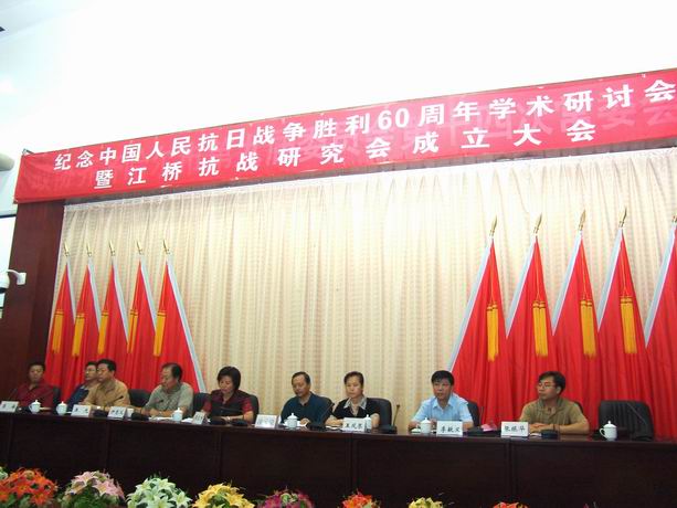 8月12日上午,作为我市纪念中国人民抗日战争暨世界反法西斯战争胜利60周年系列活动中的一项重要内容,由beats365和市委宣传部、民革市委、市社科联联合主办的“纪念中国人民抗日战争胜利60周年学术研讨会暨江桥抗战研究会成立大会”在市党政办公中心政协大会议室隆重召开。
