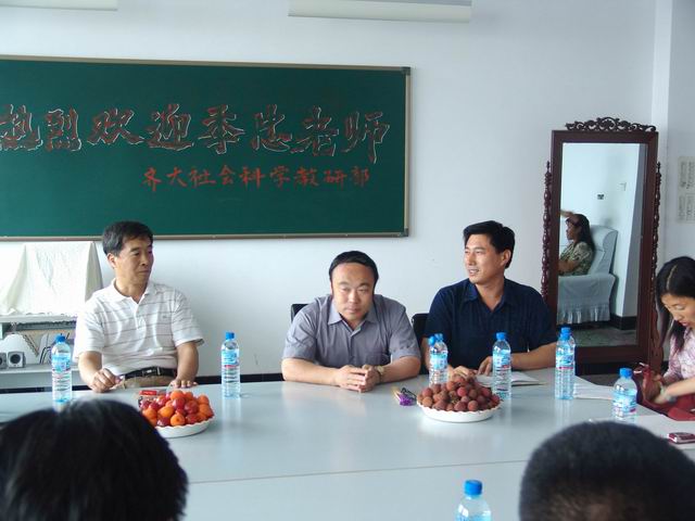 6月19日下午,季忠教授与社科部教师就“两课”教学中的相关问题进行了座谈,副校长姜守训出席并讲话。座谈会由社科部主任曲士英教授主持,宣传部、政治系等部门的领导和教师也参加了座谈。姜守训副校长在座谈会上讲了话。他首先代表学校对季忠教授应邀来访讲学表示欢迎和感谢,他在季忠教授简要介绍了学校发展概况后指出:深化“两课”教学改革,教师是关键。教师必须处理好教与学的关系,要不断夯实理论根基,不断提高自身素质,不断更新知识结构。要积极投入到“两课”教学改革,提高教学质量,为培养全面发展的高素质人才服务。在座谈中,季忠教授谈到了“两课”教学中需要处理好的关系,并结合多年从事“两课”教学与科研的经历向与会教师畅谈了工作中的感悟与体会。