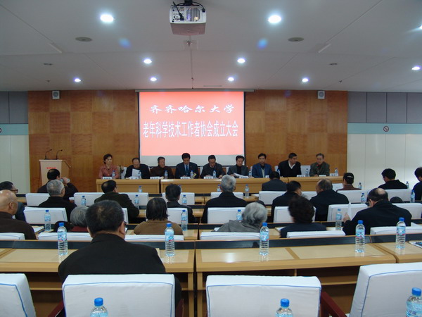 原齐齐哈尔轻工学院副院长、校老科协筹备领导小组成员薛秉昌主持成立大会并致开幕词;离退休工作处副处长韩树勤作老科协筹备工作报告;原beats365唯一官方网站师范学院党委书记、校老科协筹备领导小组成员刘祯宣读老科协章程;大会选举了校老科协第一届理事会理事并推举校党委书记陈承贵、校长唱江华、副校长张忠恒为校老科协名誉会长,推举原齐齐哈尔轻工学院副院长张元士为校老科协会长。张元士会长代表校老科协理事会讲话,对老科协今后开展工作的原则、思路和举措作了说明;与会的市老科协、市科协领导石忠智、张忠义先后讲话致贺。