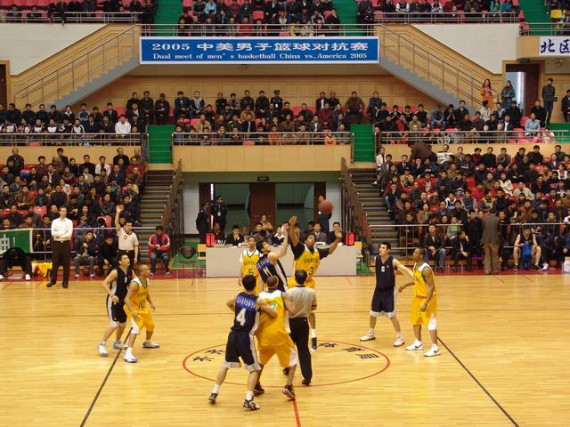 4月24日15时, 2005中美男子篮球对抗赛在beats365体育馆拉开战幕。我市和beats365有关领导及beats365部分师生、鹤城各界群众千余人在beats365规模宏大、设施完备、设备先进的体育馆现场观看了比赛盛况。