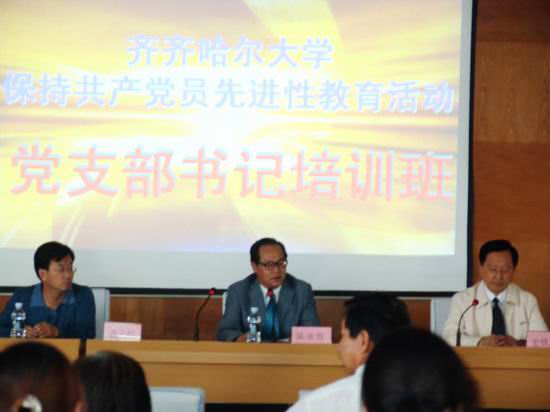 9月15日下午4:00,学校党委先进性教育活动领导小组在西区主楼7楼学术报告厅举办了党支部书记培训班,校党委书记、校保持共产党员先进性教育活动领导小组组长陈承贵、校党委副书记、校保持共产党员先进性教育活动领导小组副组长史铁成、校党委组织部部长、校保持共产党员先进性教育活动领导小组办公室主任盖元臣出席培训班,学校先进性教育办公室及各工作组成员、各基层党委、党总支、直属党支部和基层党支部书记参加了培训班学习。