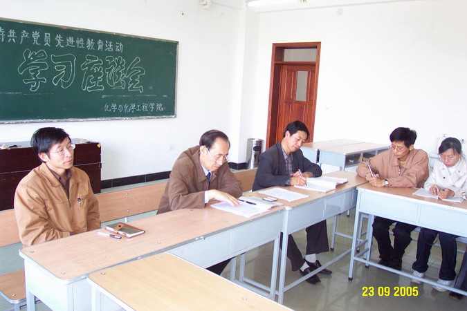 9月23日下午,唱江华校长深入化学与化工学院,亲临基层指导保持共产党员先进性教育活动。 唱校长多年来一直将具有省级重点学科,省级重点实验室,拥有雄厚教学科研实力的化工学院作为自己的工作联系点。这次他代表学校党委就先进性教育活动展开调研,加强指导来到基层,并同师生党员一起座谈,给该院的先进性教育活动注入了新的生机和活力,为后续活动的有效开展起到了积极的推动和促进作用。