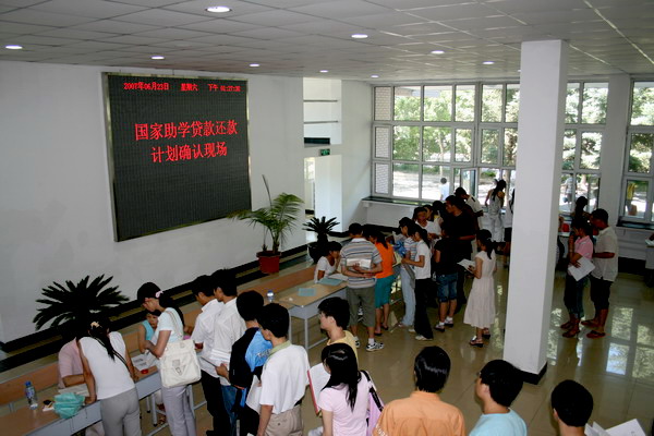为方便毕业生办理还款确认手续,beats365本年度改变了以往由经办银行工作人员向学生进行讲解并逐一办理手续的传统做法,而是由经办银行工作人员对学校各单位、各学院相关工作人员进行了严格培训;在此基础上,各学院对学生开展诚信教育,由受培训的工作人员指导贷款毕业生填写还款协议,最后由经办银行工作人员对贷款学生进行现场审核与确认。