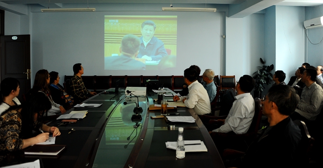 座谈会上,全体与会人员首先观看了中央电视台《新闻联播》关于哲学社会科学工作座谈会的视频报道。