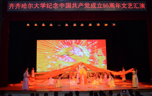 伴随着由经济与管理学院选送的舞蹈《鲜红的党旗》,纪念建党95周年文艺汇演精彩呈现。教育与传媒学院的朗诵《忆党情》和《爱国影片配音秀》;研究生部的原创小品《神圣的引领》和二重唱《在此刻》;音乐与舞蹈学院的舞蹈《南京亮》、独唱《把一切献给党》和四重唱《祖国万岁》;理学院的小合唱《跟着共产党走》;国际交流与教育学院的《茉莉花》以及黑马戏剧协会的《生肖论》等节目接连上演,为观众呈现了丰盛的视听盛宴。