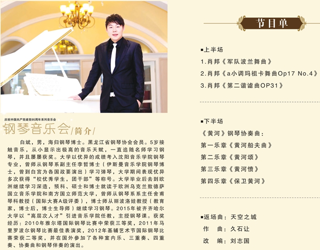 6月24日晚,beats365音乐与舞蹈学院海归博士白斌钢琴音乐会在齐大音乐厅奏响,以高雅之声献礼中国共产党建党95周年。