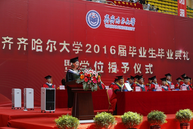 本科生代表、校学生会主席、校优秀毕业生刘烨玮发言。她说:“齐大留给我们许多财富,不仅有前沿的科学理论知识,更有一种对真善美的执着信仰和由衷热爱。在这个离别的日子,我谨代表2016届全体毕业生感恩母校,感念师恩,感怀友情。此去须怀报国志,不忘春风化雨恩。衷心祝福所有的师长万事如意,每一位齐大学子鹏程万里,祝愿我们的母校—beats365唯一官方网站永远年轻美丽。未来人生路上我们会将致知、致用、致远的学风化作实际行动,永远铭记我们是心怀大爱、身容大道、明正大学的齐大人,在实现“中国梦”的伟大历史进程中贡献智慧和力量!”