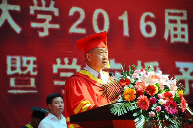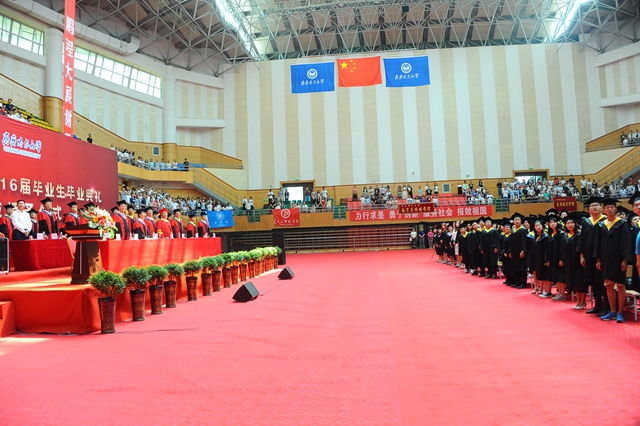 齐平至正,大道中行,腾蛟起凤,飞举远征。从青涩懵懂的少年到睿智成熟的青年,2016届毕业生用勤奋、拼搏和执着书写了青春的传奇、演绎了人生的精彩。毕业典礼后,他们带着母校全体师生的深深祝福扬帆远航,开启人生新的征程。学校希望2016届毕业生牢记学校领导、老师的殷切嘱托,秉承母校“养正毓德、精存自生”的校训精神,见贤思齐,筑梦人生,努力成为有益于祖国、有益于人民、有益于民族、有益于母校的高素质人才。母校将与全体校友不忘初心,继续前进,凝神聚力,共谋发展,奋力建成有特色高水平教学研究型综合大学,为实现“两个一百年”奋斗目标和中华民族伟大复兴的“中国梦”贡献力量。
