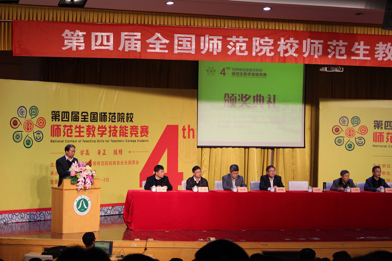 颁奖典礼上,教育部教师工作司司长王定华代表教育部向获奖同学表示祝贺,向评委、老师以及志愿者等表示感谢。王定华指出,“教师是教育的排头兵、领头雁,广大师范生是教师的后备力量”,师范生的培养质量关系到未来教师队伍的建设水平。王定华希望,相关高校要提升师范生培养质量,完善教师教育体系,推动教师教育内涵式发展,培养造就更多高素质的优秀教师。师范生教学技能竞赛为师范生提供了切磋技艺、展现风采的舞台,为广大师范院校搭建了合作交流、互助互动的平台,通过比赛见贤思齐、取长补短,努力提升办学质量,为推动教师教育改革与发展做出积极贡献。也为提高全国师范院校人才培养质量,做出了积极贡献。