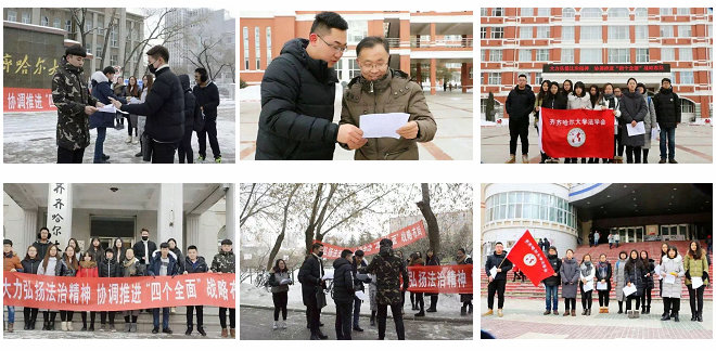 12月4日上午,哲学与法学学院副院长、法学专家苗绘教授和法学系主任李娜副教授带领法学专业师生,冒着严寒来到了文化街道兴海社区,为社区居民进行了普法宣传活动。活动分为三个部分:首先由法学专业学生向社区居民讲解国家宪法日的由来、宪法日的重要意义以及与百姓生活密切相关的法律知识;其次由学生们给小区居民赠送宪法书籍、发放宣传资料、进行问卷调查等;第三,学生们结合所学知识为社区居民现场进行了法律咨询活动。哲学与法学学院以“12.4” 国家宪法日暨全国法制宣传日为契机,组织开展了一系列普法宣传活动,营造了师生学法遵法守法用法的氛围。