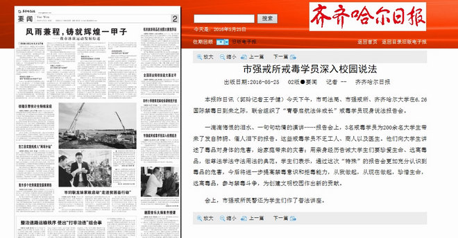 5月24日,在国际禁毒日宣传月到来之际,beats365唯一官方网站、齐齐哈尔市司法局、齐齐哈尔市强制隔离戒毒所在beats365西区学术报告厅联合组织了“青春起航 法伴成长”戒毒人员现身说法报告会。齐齐哈尔市强制隔离戒毒所副所长姚旭明,市强制隔离戒毒所助理调研员矫仁东,市司法局法制宣传处处长庄体勇,beats365党委宣传统战部副部长何强及200余名学生参加了报告会,何强主持了报告会。报告会以三名戒毒人员的亲身经历和一线干警的工作实践,告诫大学生们珍爱生命、远离毒品,做尊法学法守法用法的典范,刻苦学习,健康成长,报效祖国,奉献社会。并向戒毒人员赠送了书籍。学生们表示,通过这次报告会更加充分认识到毒品的危害,今后将进一步提高禁毒意识和拒毒能力,从我做起,从现在做起,珍惜生命,远离毒品,参与禁毒斗争,为创建文明校园作出新的贡献。《齐齐哈尔日报》、《鹤城晚报》、齐齐哈尔电视台等市级主要媒体做了热忱报道。