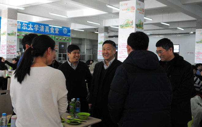 中午,校领导马立群、盖元臣、郑喜群来到东区食堂,慰问工作在一线的各学院辅导员老师。马立群在讲话中说,学生工作人员是学校开展思想政治工作的重要队伍,辅导员工作任务重、责任大,大家很辛苦;新的一年即将到来,希望你们深入学习习近平总书记的讲话精神,不断努力,在本职工作上取得更突出的成绩!