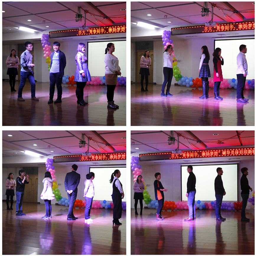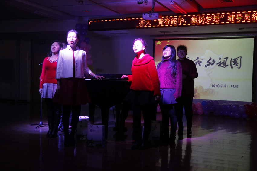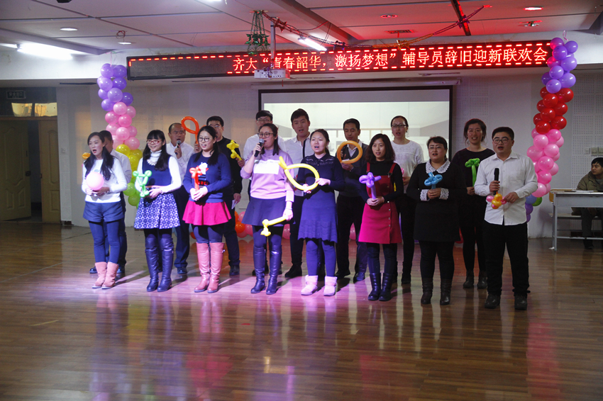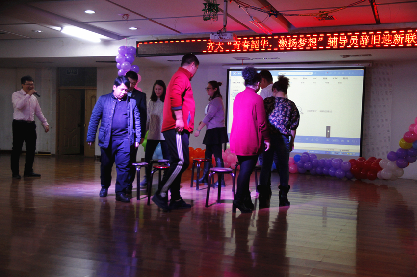 春风化雨,我们携手共育桃李;夏月蝉歌,我们并肩共度风雨。各学院主管学生工作的领导和辅导员联谊联欢,载歌载舞,表演了合唱《光阴的故事》、配乐诗朗诵《祝酒歌·齐大学工颂》、游戏《你比我猜》、魔术《神奇的辅导员》、诗朗诵《我骄傲——我是齐大辅导员》、游戏《抢椅子》、钢琴伴奏歌曲联唱、三句半《赞辅导员》、舞蹈《咋了,爸爸》以及游戏《贴面传递》等,晚会最后以西区全体辅导员合唱《同一首歌》圆满结束。
