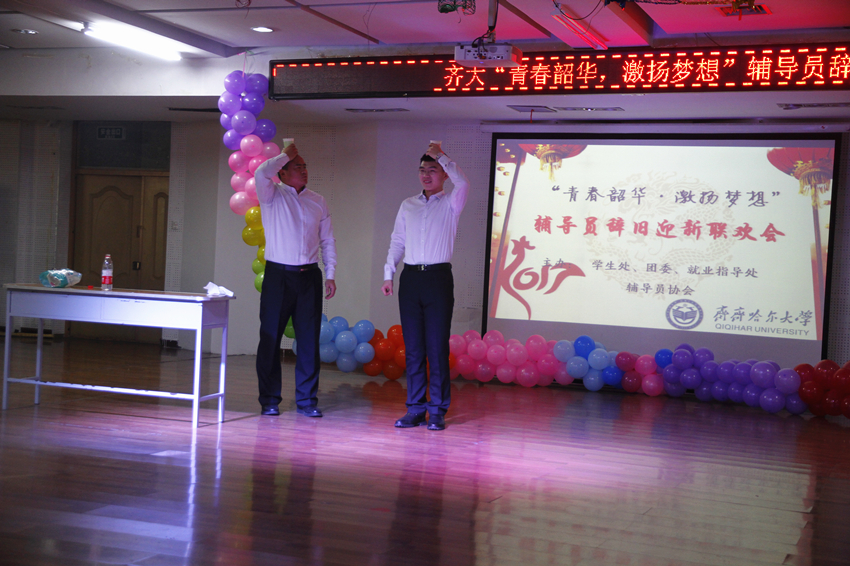 联欢会由学生工作部(学生处)主办。校党委副书记盖元臣,校党委常委、常务副校长郑喜群出席了联欢会,学生工作部(学生处)部(处)长姜波、校团委副书记苏醒、就业指导处副处长董云飞、学生工作部(学生处)副部(处)长张树启、各学院学生工作主管领导参加了联欢会,与全校辅导员一起联谊迎新。