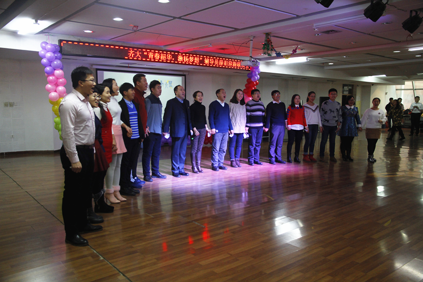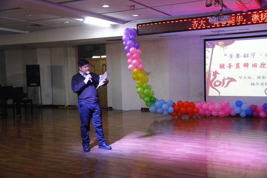 校党委常委、常务副校长郑喜群在联欢会上致辞,他说,辅导员是学校从事思想政治教育、保证校园安全稳定的主力军,是学生成长成才成人的领路人,在过去的2016年里为学校建设、学生发展贡献了力量,希望全体辅导员在2017年里要以习近平总书记在全国高校思想政治工作会议上的重要讲话精神和党的十八届六中全会精神为指导,多学习,勤实践,努力创新工作方法,开拓工作思路,不断提升自身能力水平,促进学生成长、成才、成人,为高水平大学建设做贡献!他为全体辅导员朗诵了塞缪尔·乌尔曼的经典诗歌《年轻》。