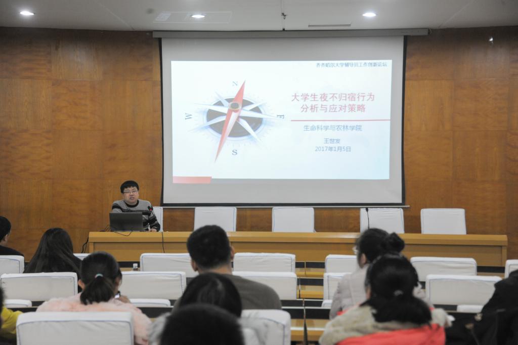 本次论坛共收到20个学院辅导员提交的26篇论文,为历届论坛收集论文数量最多,参与面最广,质量最高。经遴选,理学院王玢的《辅导员采用教练技术提升谈心谈话效果》、文学与历史文化学院景言的《校园贷存在的问题及对策探讨》、经济与管理学院王欢欢老师的《浅析高校辅导员在大学生创新创业教育中的作用》、化学与化学工程学院的王欢《校园体育文化视域下大学生基础文明养成教育研究》、生命科学与农林学院王世发的《大学生夜不归宿行为与应对策略》等5篇论文在论坛上进行了大会交流。