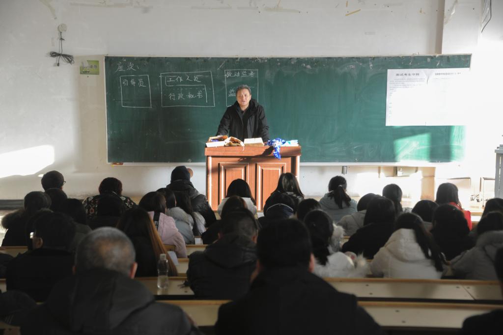 12月28日,在中区办公楼504会议室,副校长李英杰带领领导小组全体成员召开会议,对教师资格面试工作进行了统一部署,各有关部门也给予了高度重视,在网络安装调试、遴选考官、新闻宣传、考场布置、监考人员和工作人员安排、纪检监督、安全保卫、财务及后勤保障等各方面积极工作,保证了考试过程秩序井然,给考生提供了良好的考试环境,赢得了省教育厅和省招生考试院巡视人员的高度认可。