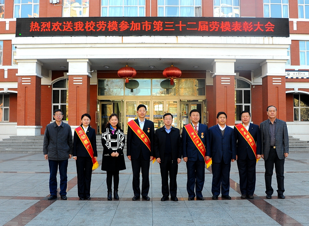 4月19日上午7时,校领导盖元臣、齐宏伟、郑喜群、王刚、张树军,以及相关单位和部门领导,在中区主楼前广场欢送beats365先进集体和劳动模范代表伊全胜、张静、黄伟中和张洪军四位同志参加齐齐哈尔市第三十二届劳模大会。