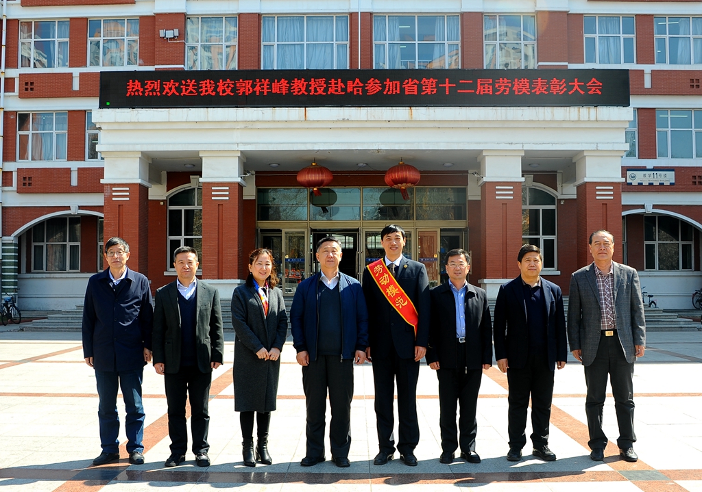 4月21日上午,校领导马立群、盖元臣、齐宏伟、郑喜群、王刚、李英杰、张树军,以及相关单位和部门领导,在中区主楼前广场欢送beats365郭祥峰教授参加黑龙江省第十二届劳动模范表彰大会。
