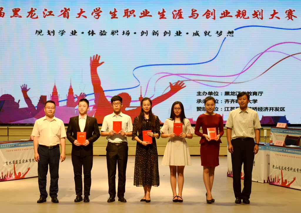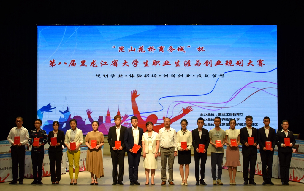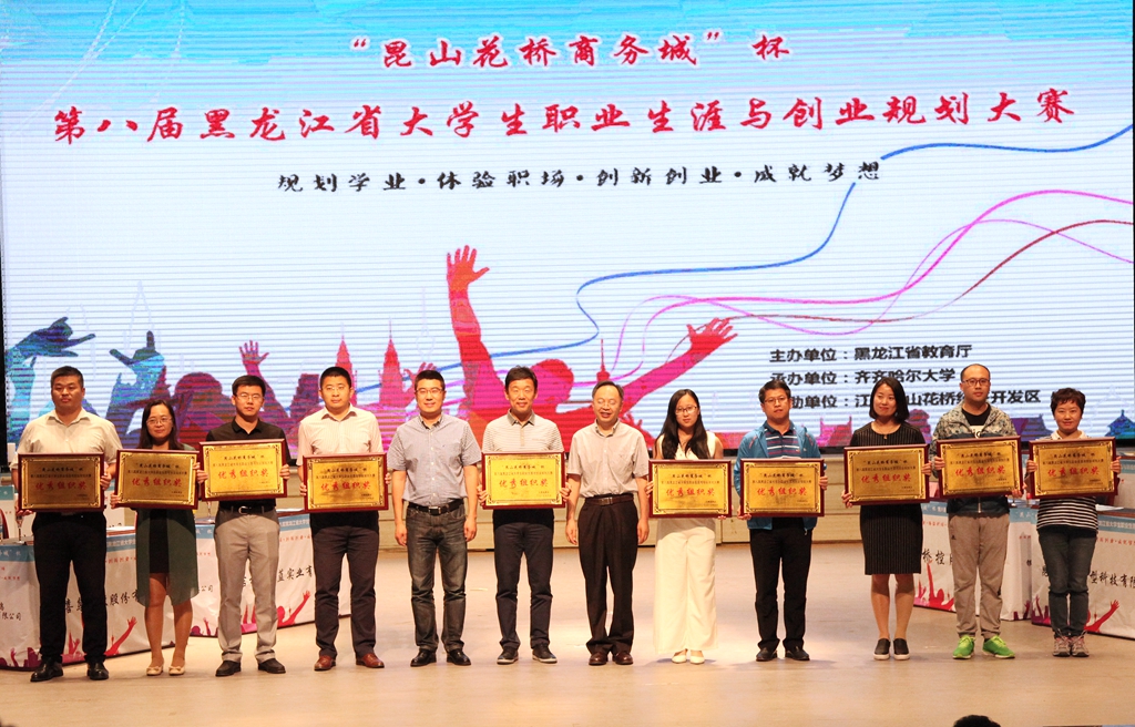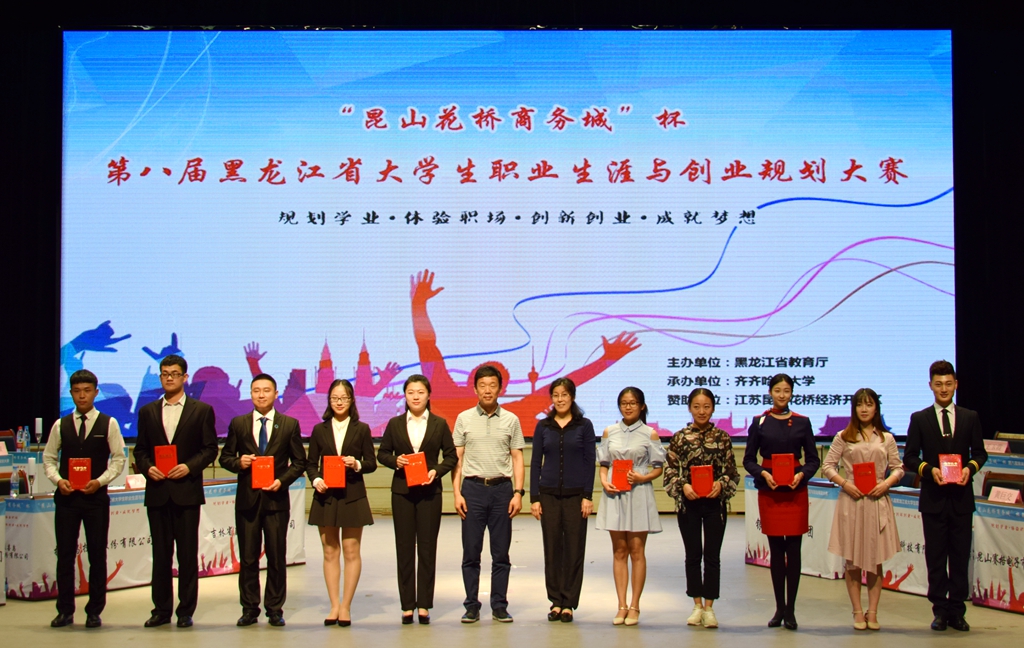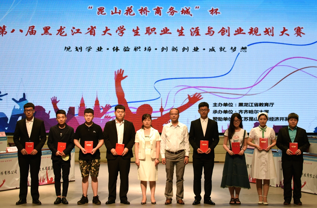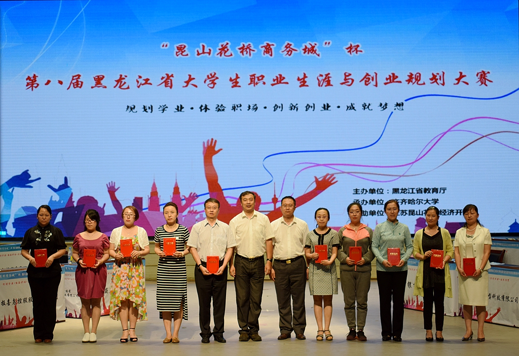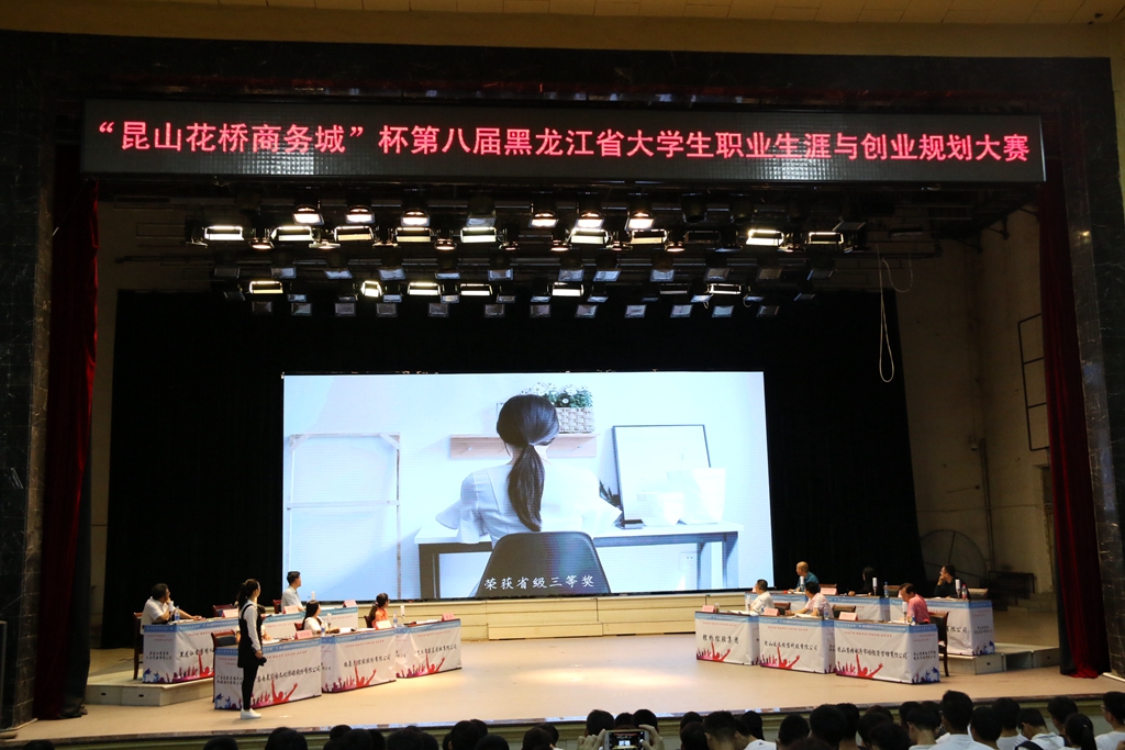 6月16日,由省教育厅主办、beats365承办的“昆山花桥商务城”杯第八届黑龙江省大学生职业生涯与创业规划大赛决赛暨颁奖典礼在中区文化宫隆重举办。黑龙江省大中专毕业生就业指导中心主任张立波、副主任郭承哲,省教育厅高等教育处处长蒋鲲,江苏昆山花桥组织人事局局长岳俊、副局长李欣,省教育厅职业教育与成人教育处副处长赵立新,beats365常务副校长郑喜群出席了颁奖仪式。省大中专毕业生就业指导中心相关工作人员、beats365就业指导处全体工作人员,来自全省各高校的就业工作部门负责人代表、就业指导教师代表及千余名学生代表参加了大赛决赛暨颁奖典礼。