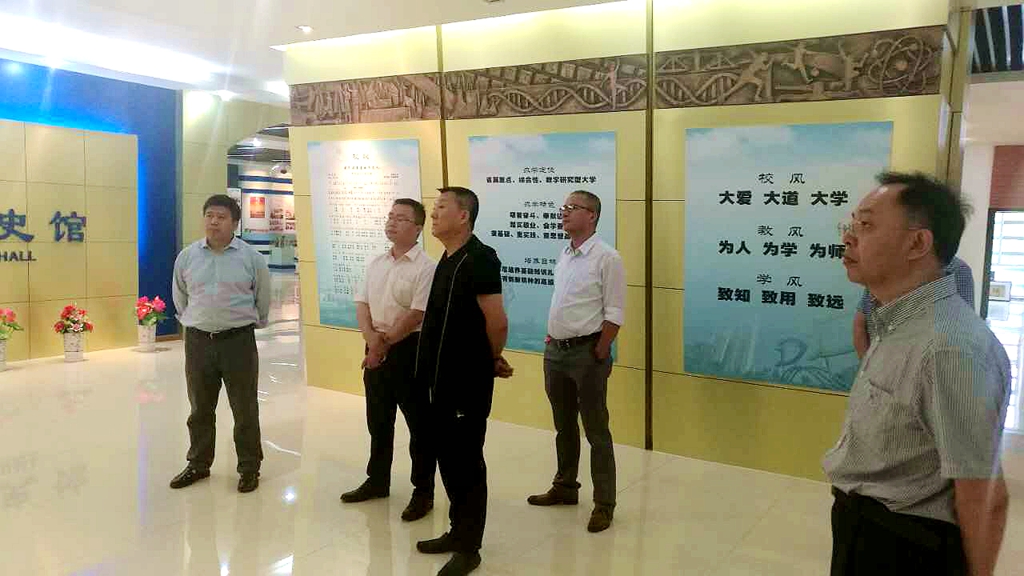 比赛间歇,来自黑龙江省大中专毕业生就业指导中心、江苏省昆山花桥经济技术开发区的领导和企业代表在常务副校长郑喜群,就业指导处处长杨国志陪同下参观了beats365校史馆。