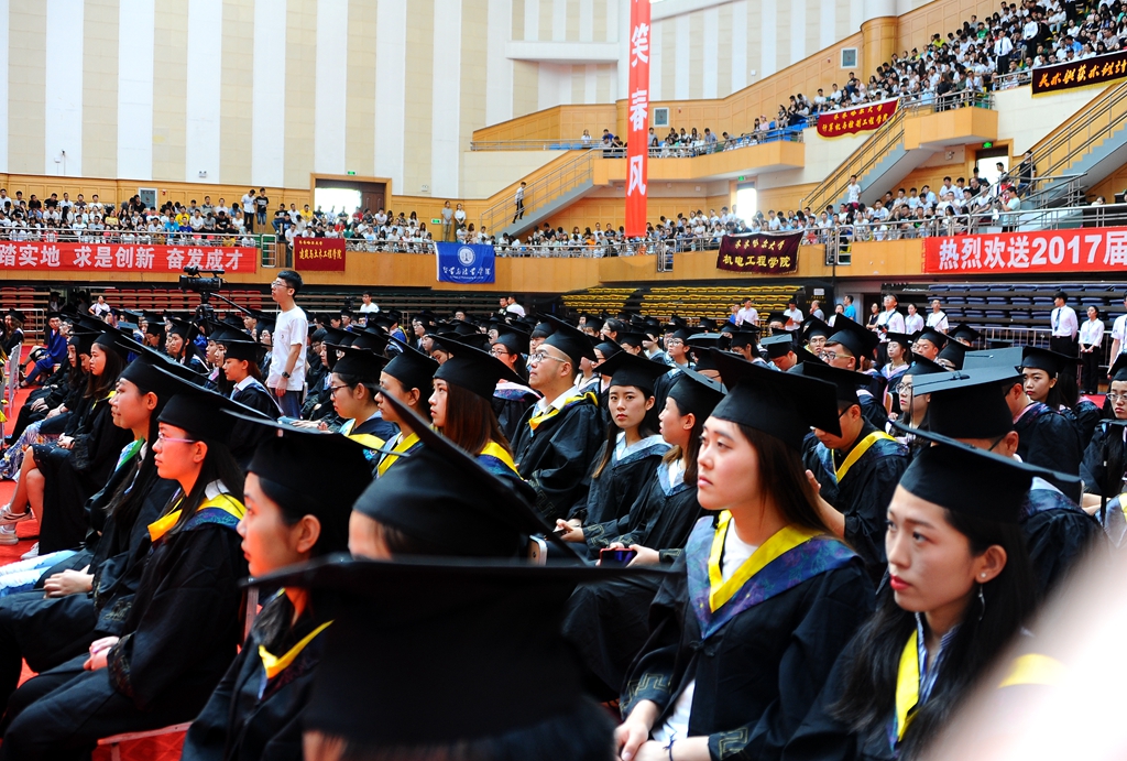 2017届共有本科生6312人,研究生568人,留学生68人走出校门,他们中的绝大多数同学完成了人才培养方案规定的内容,达到毕业和学位授予要求,准予毕业并授予相应学位。为了见证这一光荣而神圣的时刻,一些毕业生家长也来到毕业典礼现场并在嘉宾席就座,与毕业生一起分享光荣毕业、荣授学位的幸福和喜悦。