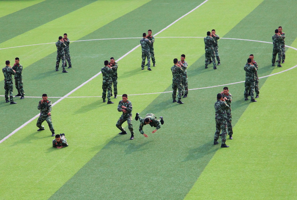 承训部队教官、武警齐齐哈尔支队官兵进行军事技能表演