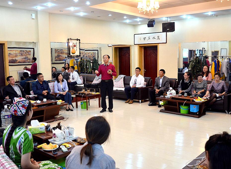 茶话会过程中,维吾尔族、哈萨克族同学为与会师生表演了富有民族特色的舞蹈,他们舞姿优美、现场热情洋溢,掌声不断。