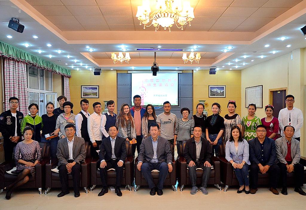 校党委书记兰景力首先询问了来自新疆维吾尔自治区的11名同学生活、饮食情况,并代表学校欢迎新疆少数民族同学们来到齐大学习生活,向他们致以节日的问候。他结合自己四年的援疆工作和生活经历,向与会老师、同学介绍了新疆少数民族的风土人情。