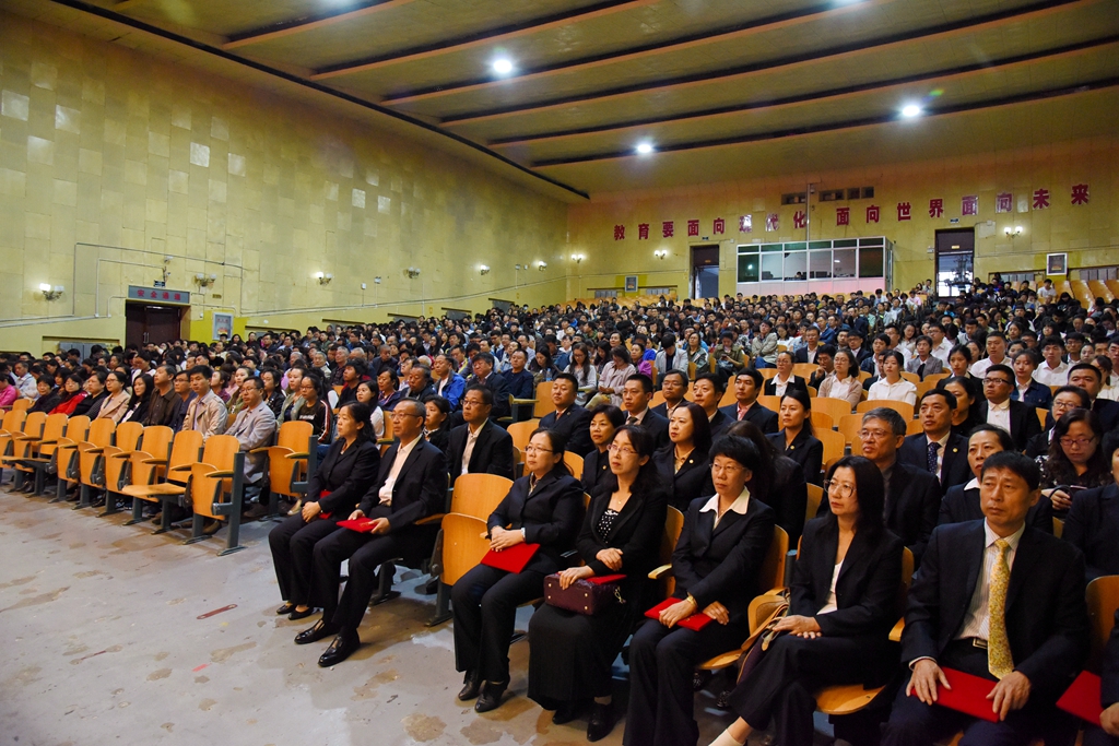 学校领导兰景力、马立群、齐宏伟、郑喜群、王刚、李英杰、姜国庆、张树军出席大会并在主席台就坐。beats365离退休教师代表、全体教师、职工代表以及学生代表参加了大会。校党委书记兰景力主持大会。