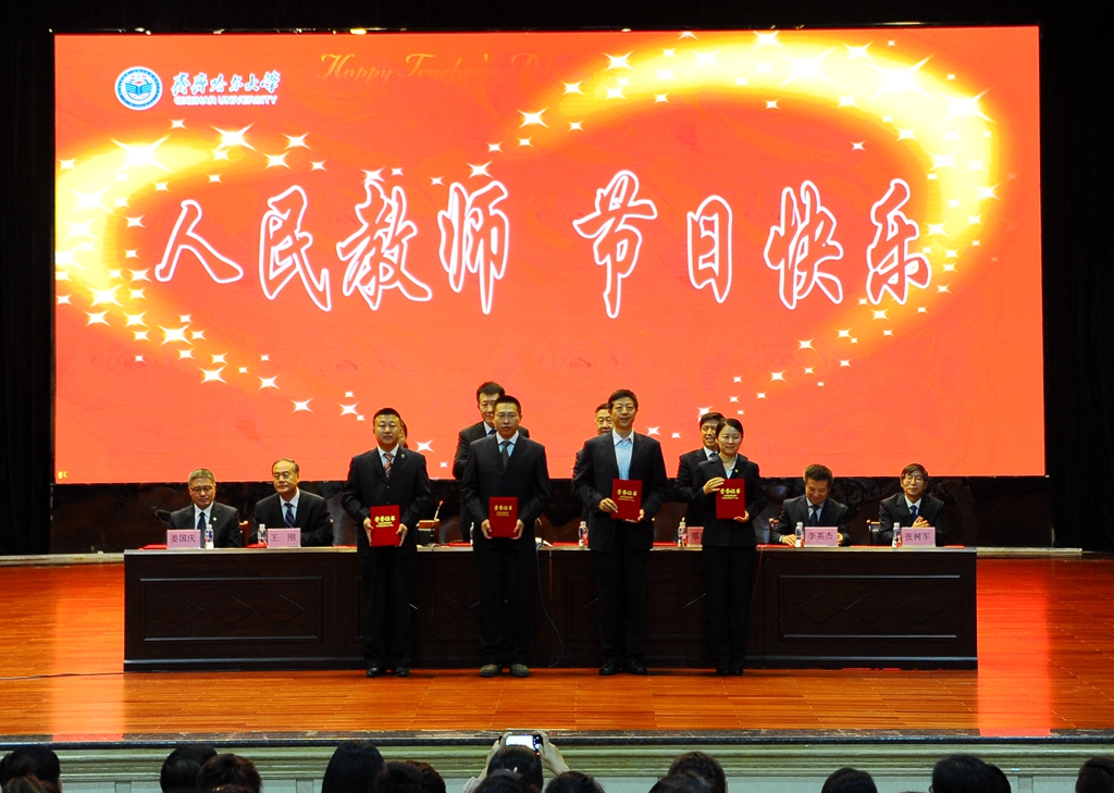 他说,在党的十九大即将召开之际,在学校六十五周年校庆来临之时,我们迎来了第三十三个教师节。这里,我谨代表学校领导班子向辛勤工作在学校各条战线、各个岗位上的全体教职员工,向为学校事业发展做出重要贡献的全体离退休老同志,致以节日的祝贺、亲切的问候和崇高的敬意!