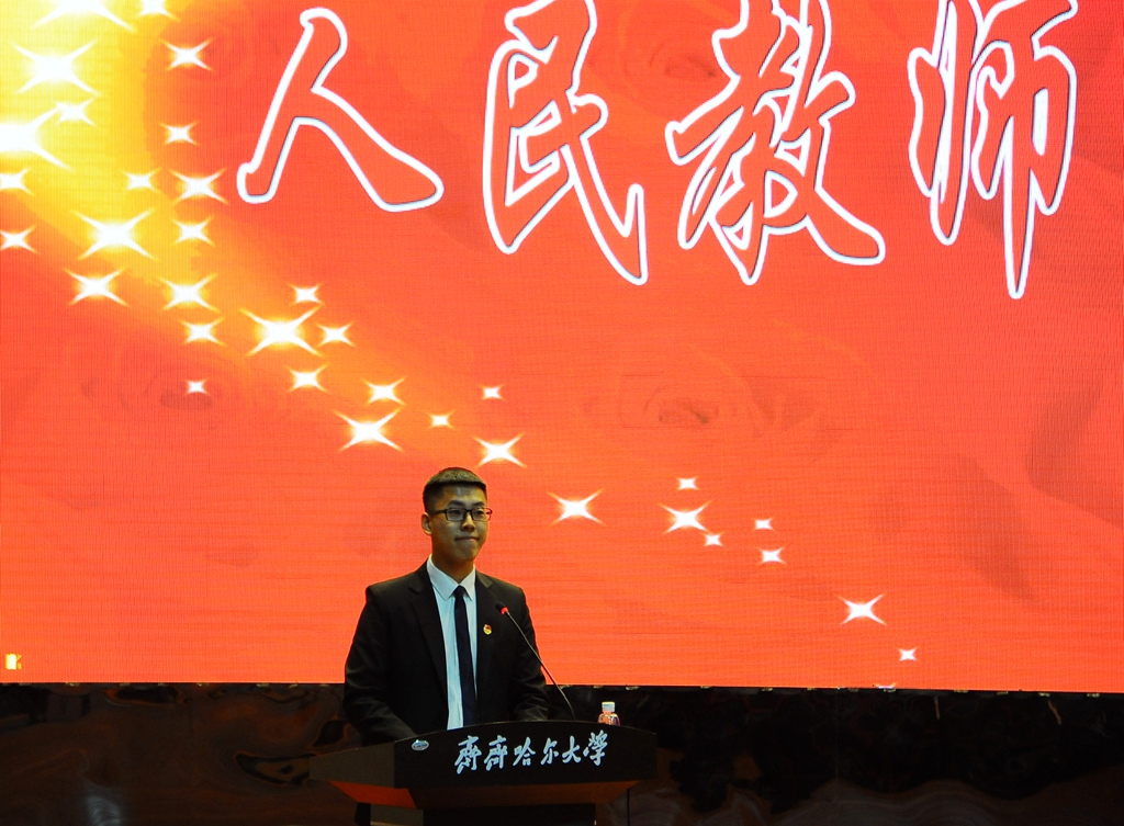 学生代表、校学生会主席、机电工程学院郑祥鹏同学在大会发言。他代表全校同学,向所有默默奉献,耕耘在教学科研一线的老师们致以节日的祝福,并由衷的道一声:“老师,您辛苦了”。他表示,作为学生,我们决心以实际行动更加严格要求自己,以致知、致用、致远的三致学风为指引,努力学习,健康成长,以优异的表现迎接教育部本科教学工作审核评估,用智慧和热情与敬爱的老师们一道,共同续写beats365唯一官方网站的辉煌,创造更美好的明天!