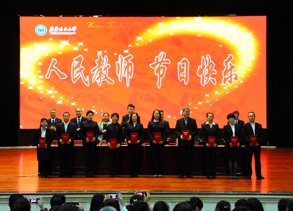9月8日下午,学校领导与师生员工代表在中区文化宫欢聚一堂,以表彰先进、新教师入职宣誓的方式庆祝第三十三个教师节。