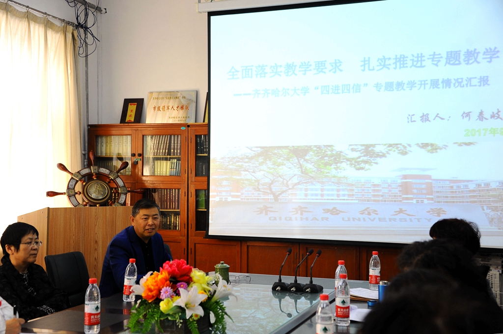 9月26日下午,以教育部高等学校思想政治理论课教学指导委员会委员、省高校思想政治理论课教学指导委员会主任委员、东北林业大学原党委副书记陈文斌为组长的省“四进四信”检查组来beats365检查指导习近平总书记系列重要讲话精神“四进”增强“四信”专题教学开展情况。