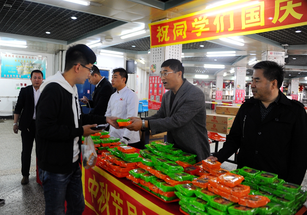 受校党委书记兰景力、校长马立群委托,副校长郑喜群和学生工作部(学生处)部(处)长姜波、后勤管理处副处长杨庆忠等部门负责人一起,来到食堂亲切慰问假期没有回家的同学,向同学们发放了月饼,并将学校的祝福和问候带给了假期留校的各位同学,与大家一起共度中秋佳节。