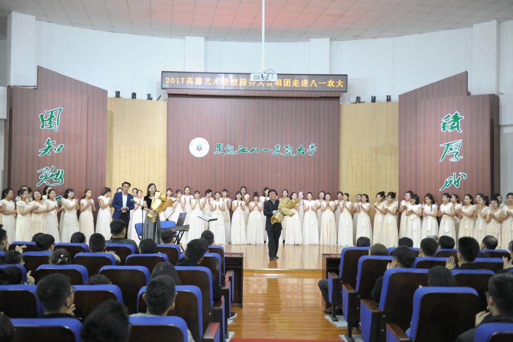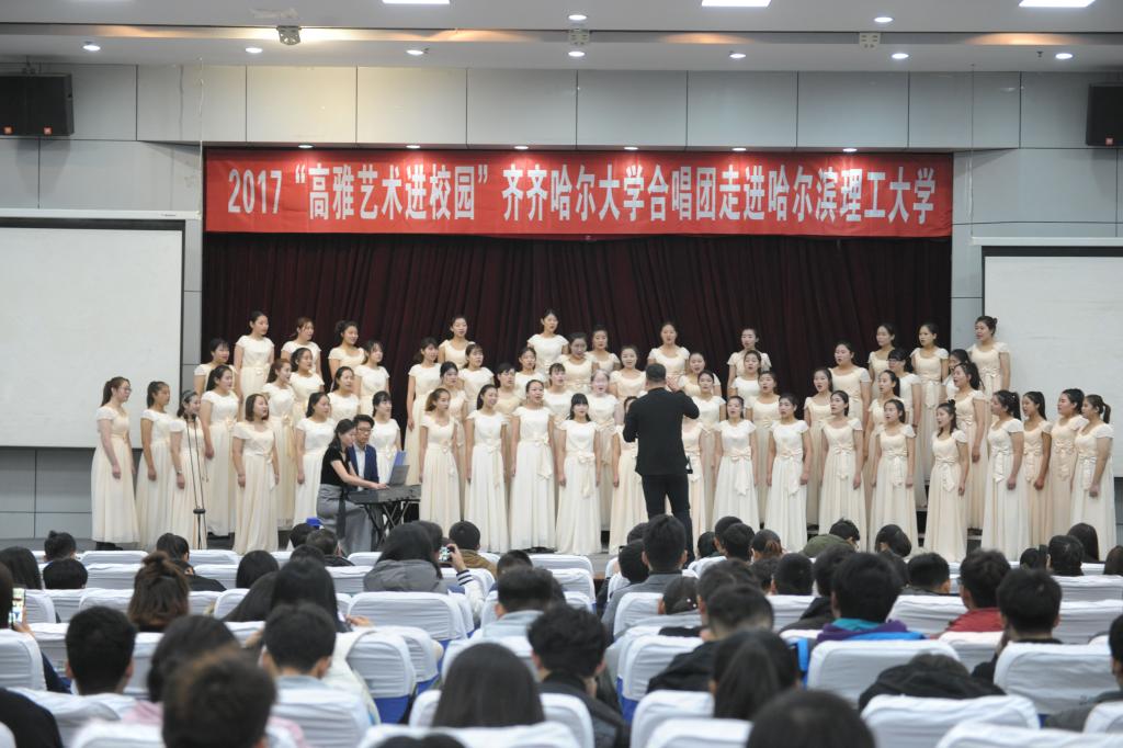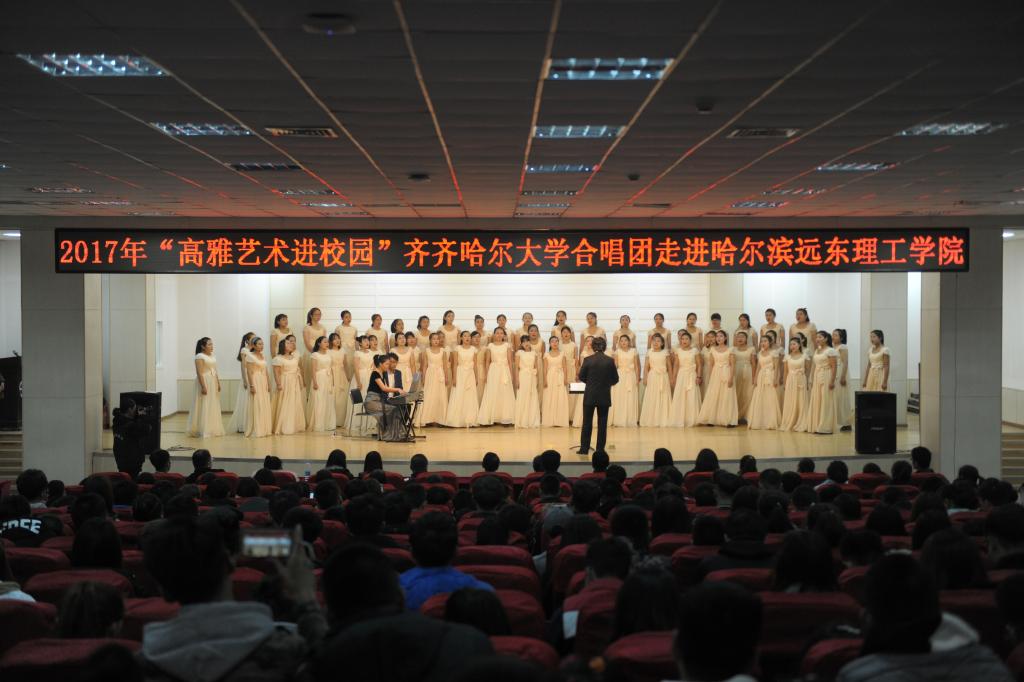 在中国共产党第十九次全国代表大会召开之际,为传承和弘扬高雅艺术,10月20—23日,受黑龙江省教育厅、文化厅、财政厅的指派,beats365唯一官方网站音乐与舞蹈学院院长孙相根,校党委宣传统战部副部长何强,音乐与舞蹈学院管弦系主任郭旭,带领beats365唯一官方网站合唱团70余名师生,赴哈尔滨远东理工学院、哈尔滨理工大学、大庆医学高等专科学校、黑龙江八一农垦大学、大庆职业学院开展了五场“高雅艺术进校园”专场演出。