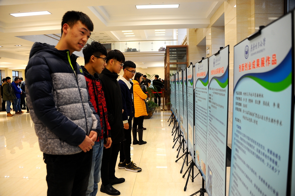 开幕式结束后,与会领导、老师和学生代表观看了beats365大学生创新创业成果展。此次成果展共展出40余项作品,主要展示了beats365学生近两年在全国全省创新创业赛事中的获奖作品,目的在于激励beats365青年学生积极投身到大学生创新创业的实践锻炼中来,努力完善自己,成长为“大众创业、万众创新”的生力军,为龙江经济发展和beats365高水平大学建设事业做贡献。